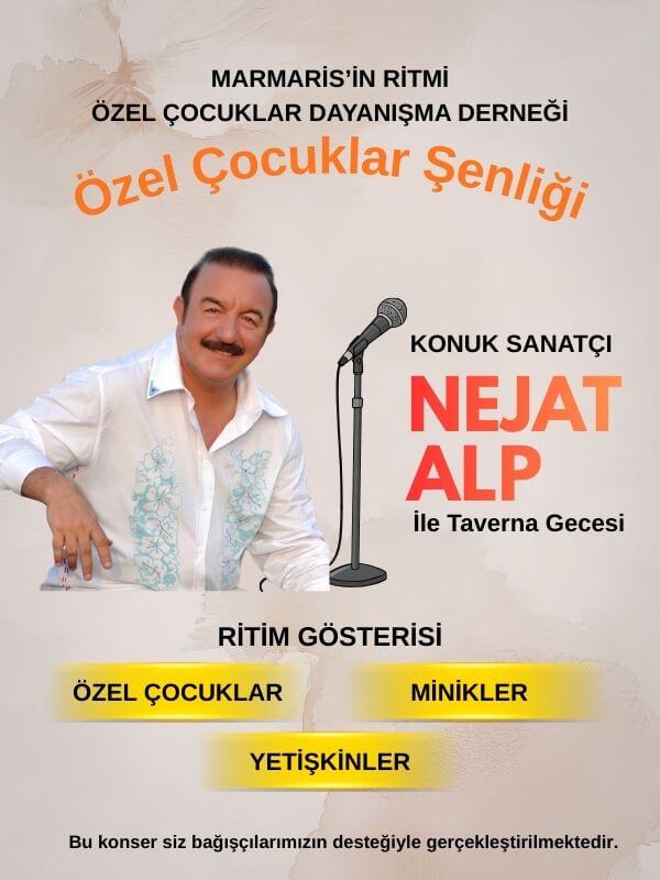 Marmaris’te anlamlı ve keyifli bir geceye davetlisiniz. Marmaris’in Ritmi Özel Çocuklar Dayanışma Derneği tarafından düzenlenen Özel Çocuklar Şenliği, ritim gösterileri ve miniklerin sahne performanslarıyla gerçekleşecek. Gecenin konuğu ise sevilen sanatçı Nejat Alp olacak. Özel çocuklarımız, minikler ve yetişkinlerin sahne alacağı bu anlamlı etkinlik, bağışçılarımızın desteğiyle hayata geçirilmektedir. Hem eğlence hem dayanışma dolu bu özel geceyi …